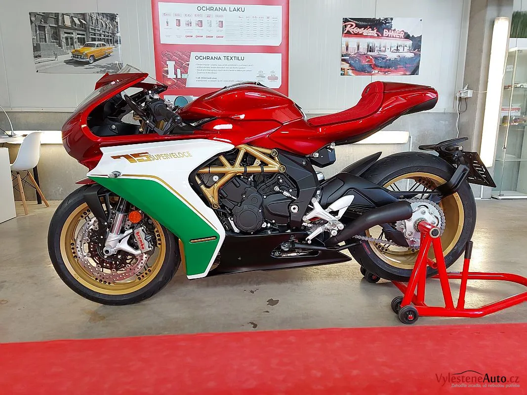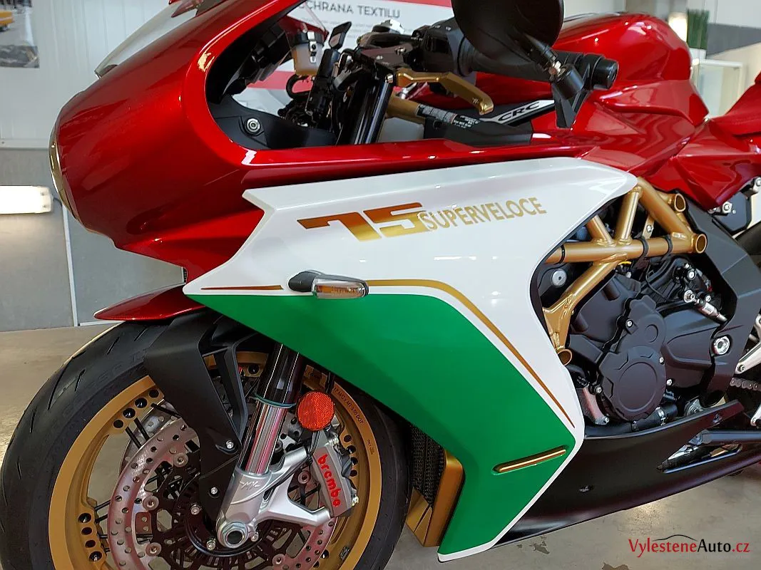 Nádherná MV Agusta 75 Superveloce v limitované edici Anniversario, která se při online prodeji vyprodala během několika vteřin. Toto je 16 kus ze 75 celkem vyrobených.