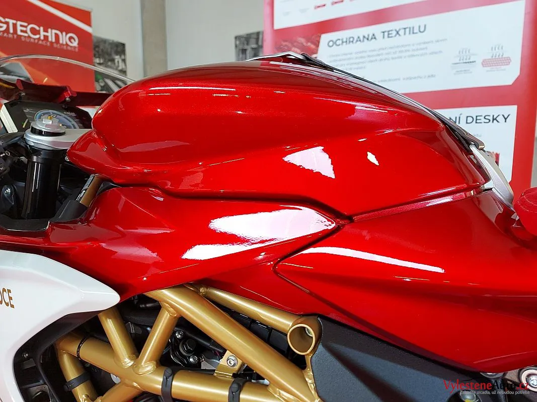Takhle Agusta vypadá po vícekrokovém přeleštění a kompletní keramické ochraně s výdrží až 5 let a zárukou. Kromě lakovaných dílů jsme kvalitní keramikou ošetřili také všechny matné plastové díly, litá kola a veškeré další detaily.