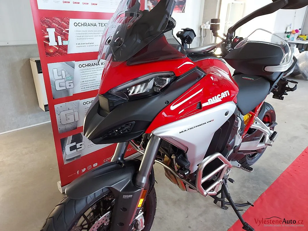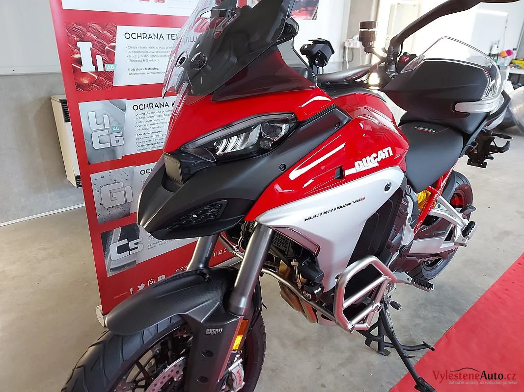 Ďábelské, červeně nalakované enduro Ducati Multistrada, čerstvě připravené na zajímavou sezónu.