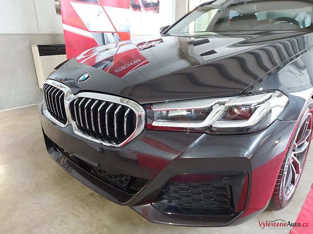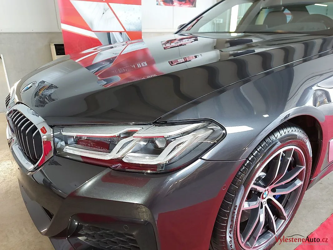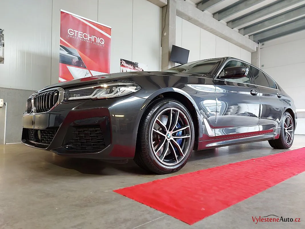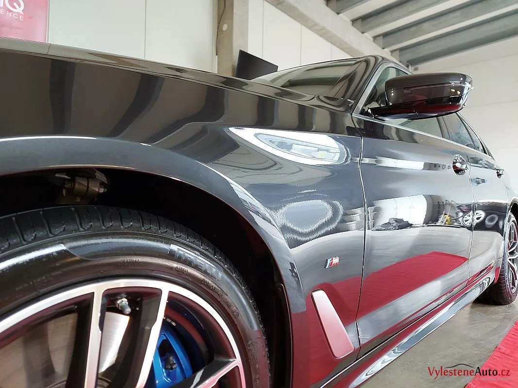 Krásně postavené BMW 540d, nalakované šedou perleťovou metalízou.