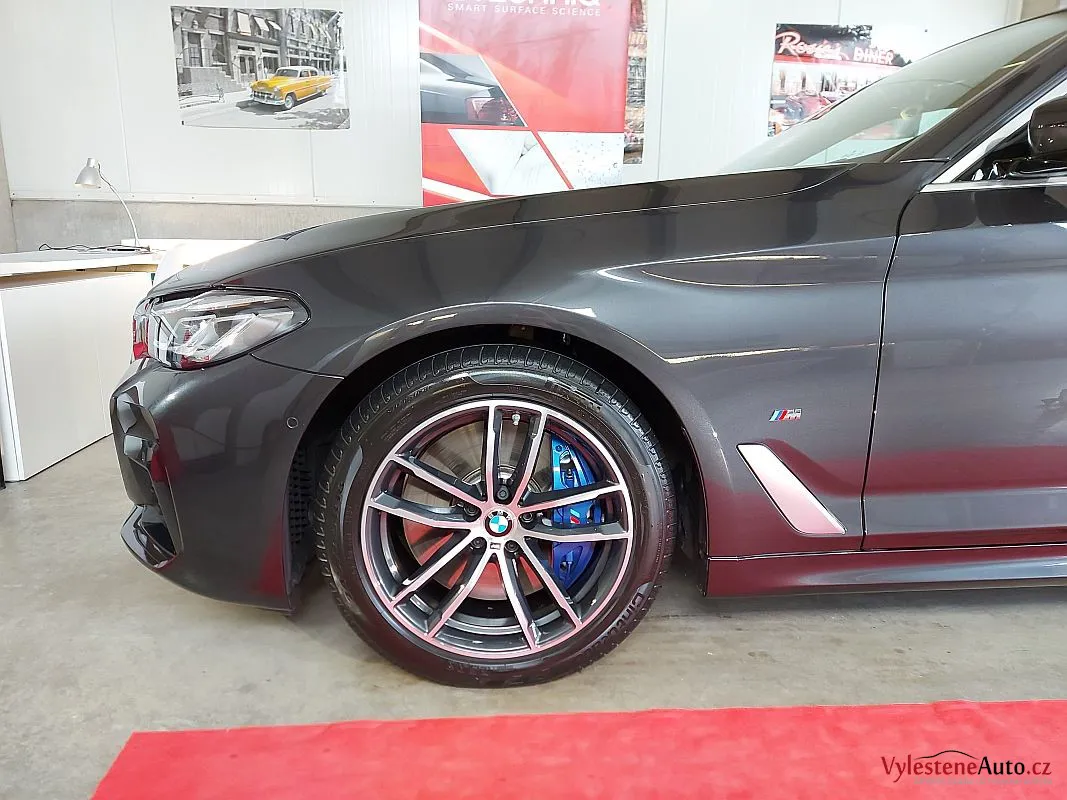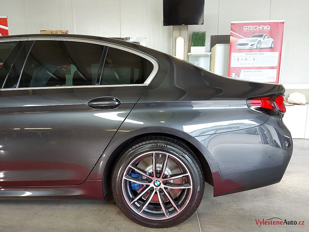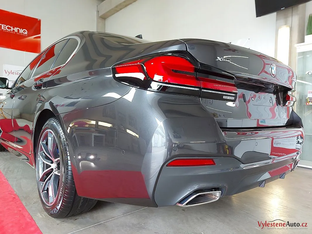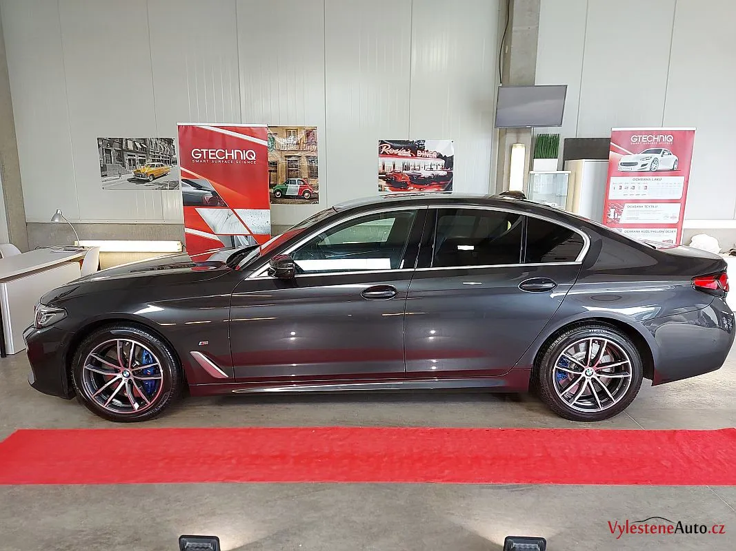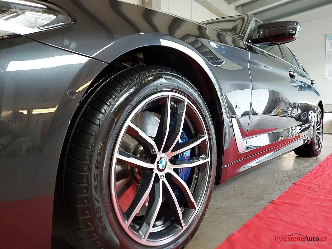 Krásně postavené BMW 540d, nalakované šedou perleťovou metalízou.