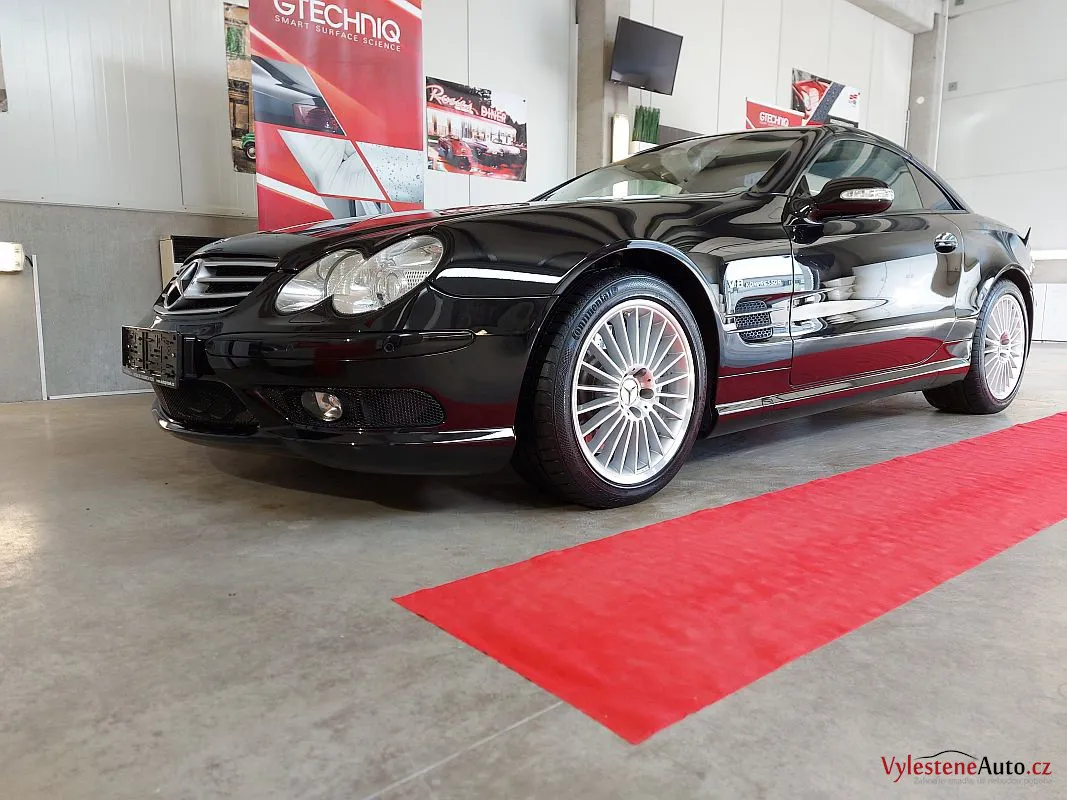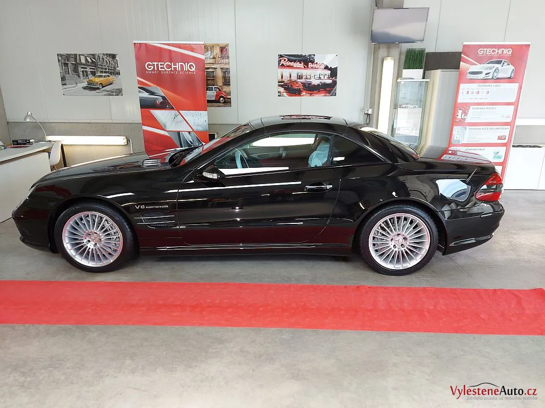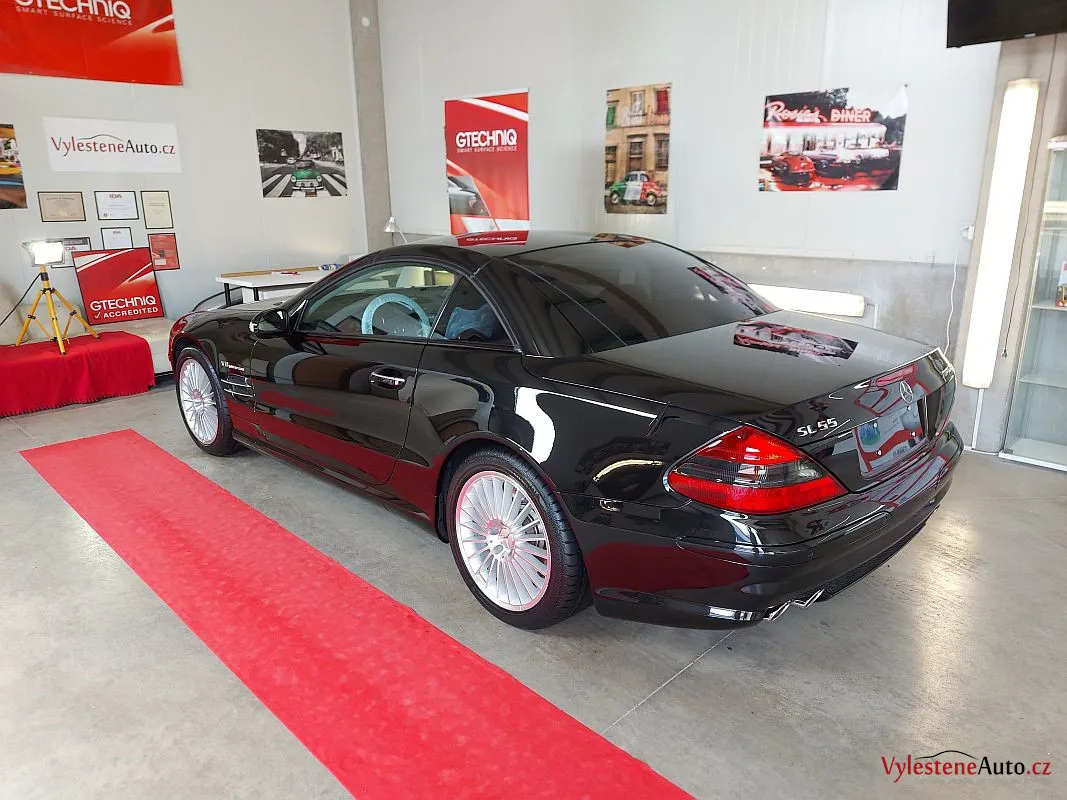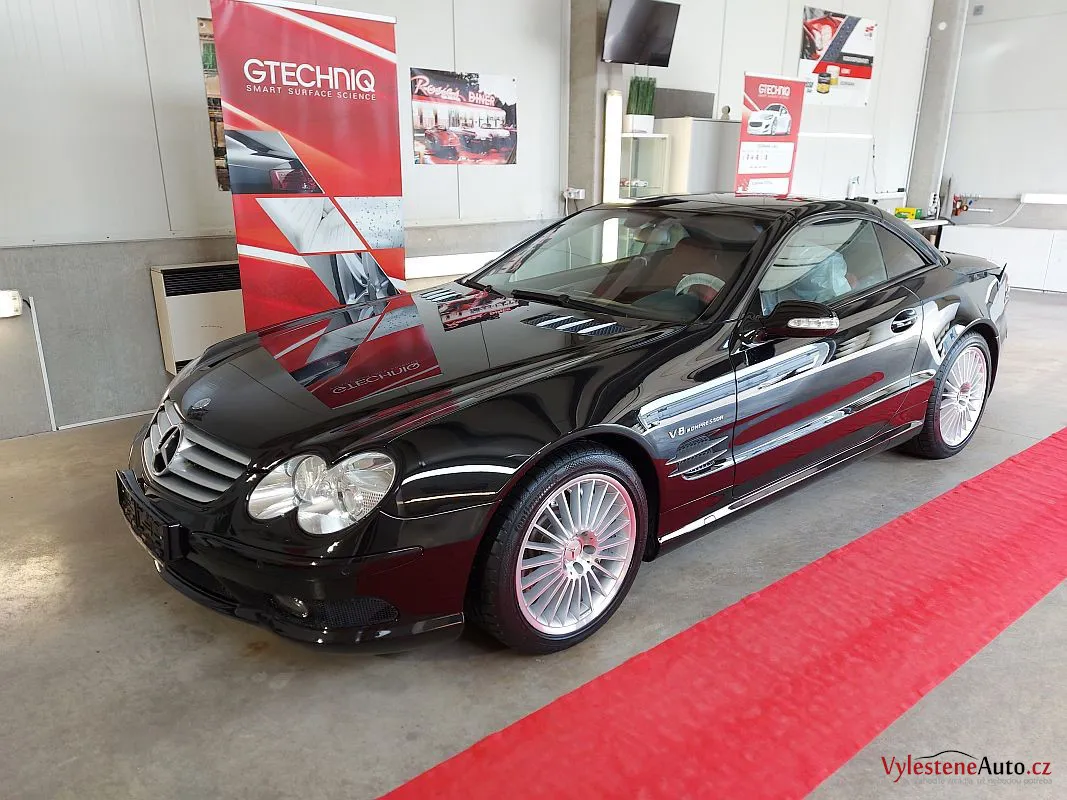 Takhle SL55 AMG vypadá po pečlivé dekontaminaci, jemném přeleštění laku a ochraně špičkovým voskem s vysokým obsahem karnauby.