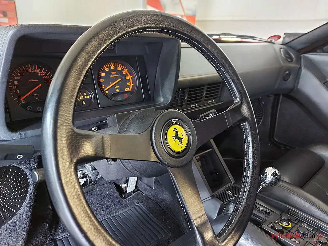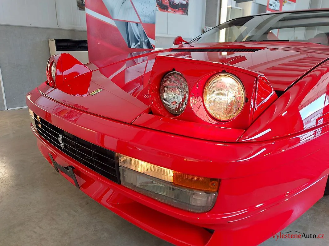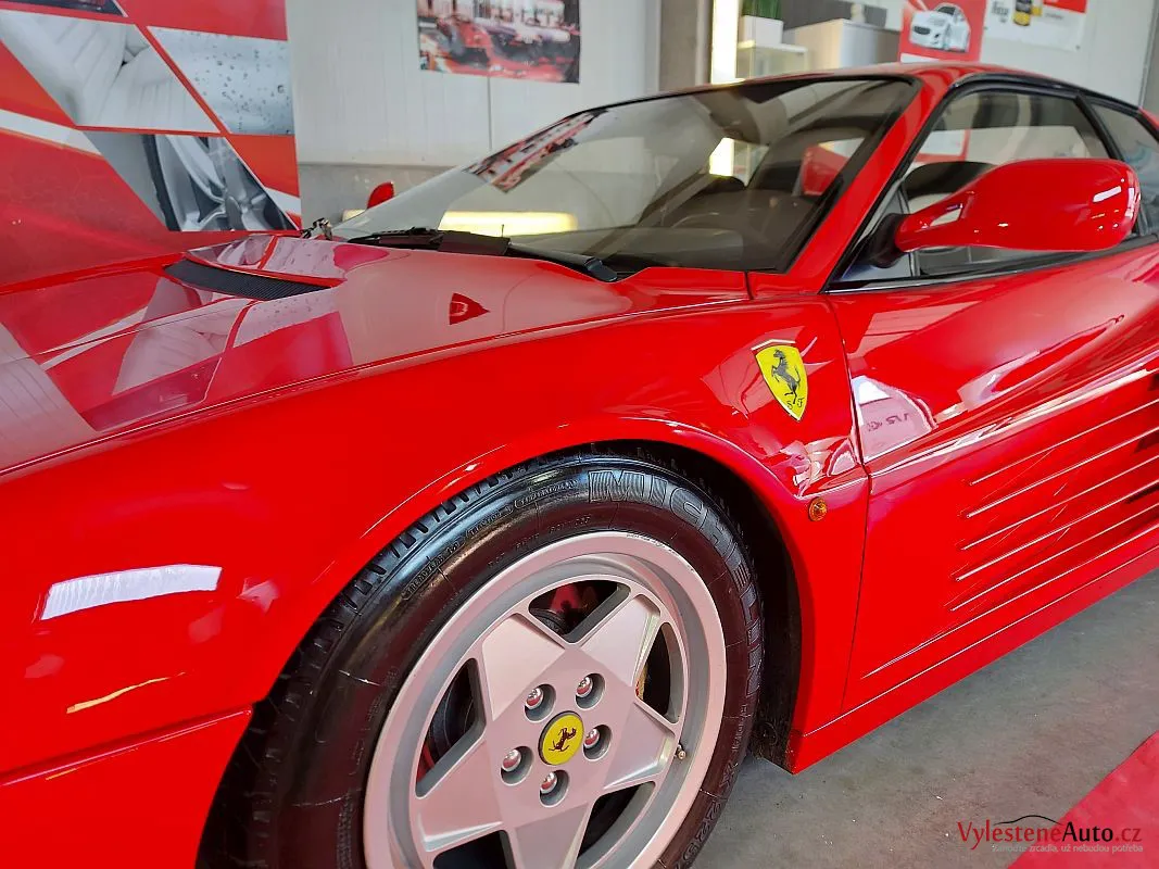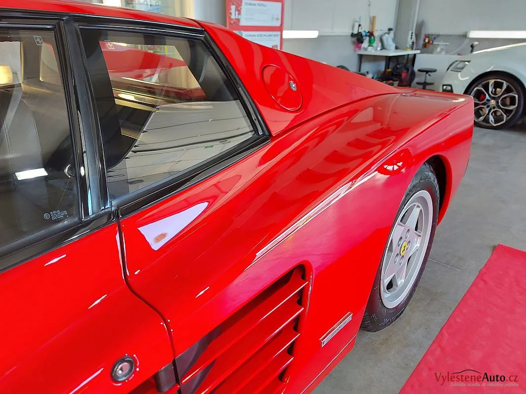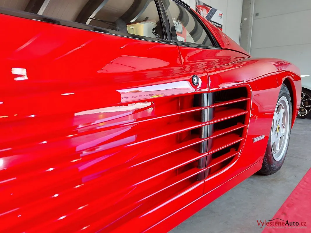 Nádherné a naživo neskutečně nizoučké Ferrari Testarossa, legenda s plochým motorem V12, červeně lakovanými ventilovými víky a spoustou úžasných detailů.