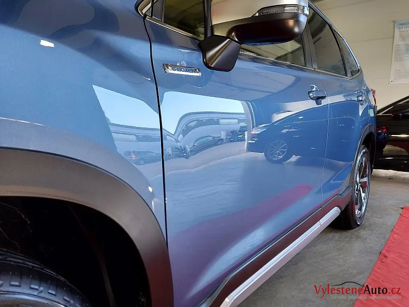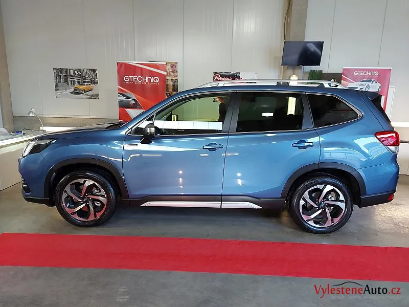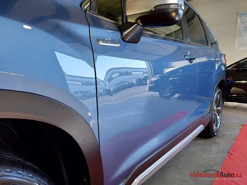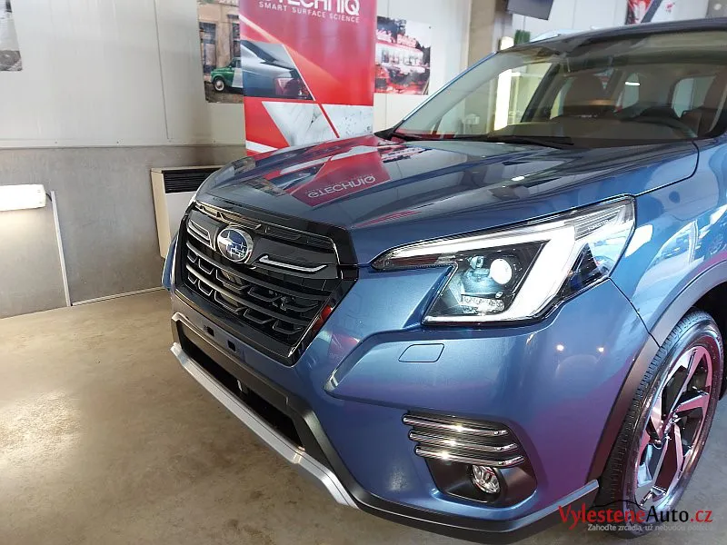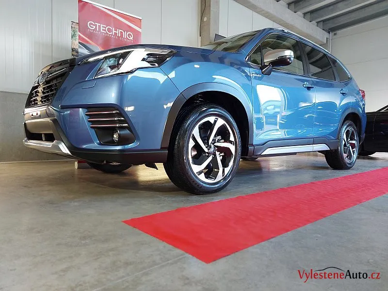 Krásně modré Subaru Forester s motorem boxer. Takhle vypadá po vícekrokovém leštění laku a ochraně špičkovou keramikou s výdrží až 5 let a zárukou.