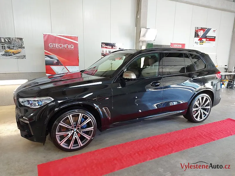 Krásné BMW X5 s benzinovým šestiválcem a hybridním pohonem, ale hlavně s krásným černým lakem. Takhle X5 vypadá po vícekrokovém leštění a ochraně špičkovou vícevrstvou keramikou s výdrží až 5 let a zárukou.