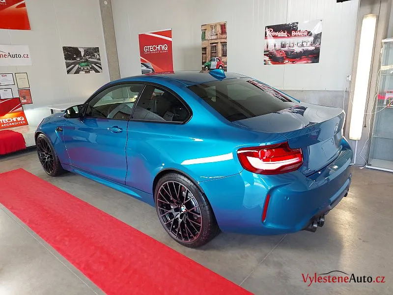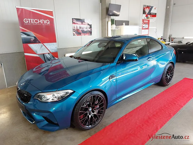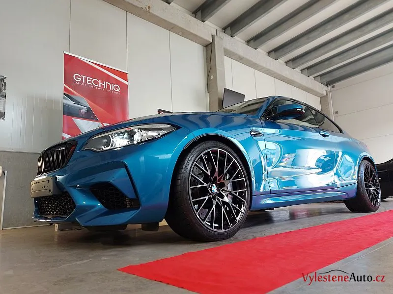Pro ještě větší radost, jsme M2 zdekontaminovali a vícekrokově vyleštili. Jako poslední krok jsme zvolili špičkovou leštěnku určenou pro výstavy automobilů. Zmizely tak drobné nedokonalosti a modrá metalíza získala větší lesk a hloubku. To vše s excentrickými leštičkami = za malých teplot, bezpečně a takřka bez úbytku laku.