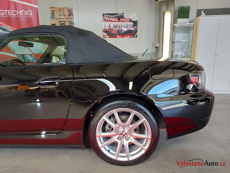 Nádherná Honda S2000 - krásně vyvážená, lehká, s manuální převodovkou a pohonem zadních kol. Nejsilnější atmosférický dvoulitr na světě dokáže točit až 9000 otáček za minutu. Kolem roku 2004 byl svět ještě v pořádku.