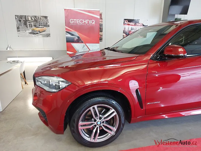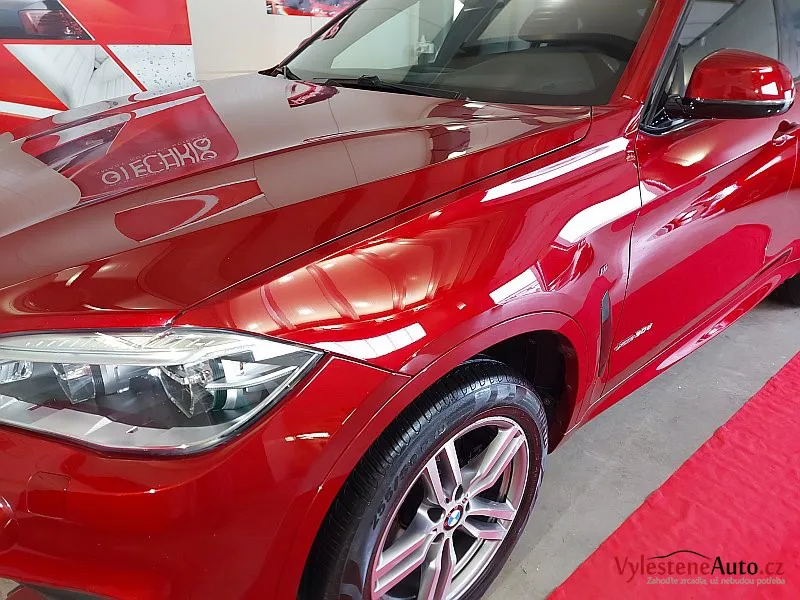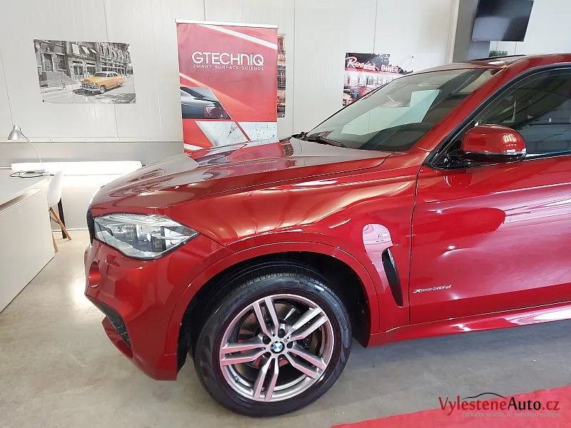 Po pečlivé dekontaminaci jsme se pustili do leštění laku, které bylo nutné hlavně na prazích zopakovat 11x, než jsme dosáhli alespoň trochu uspokojivého výsledku. Po odstranění škrábanců jsme X6 přeleštili ještě dvěma dalšími kroky pro získání maximálního lesku a hloubky laku.