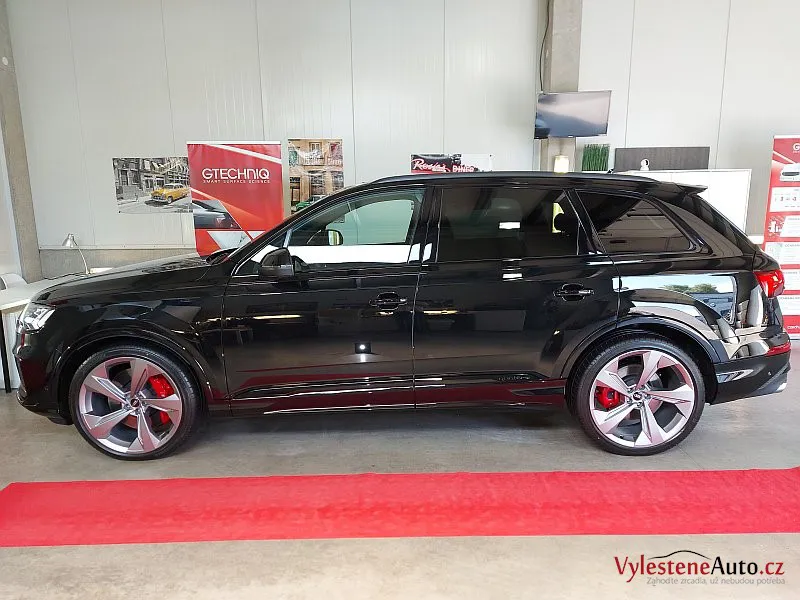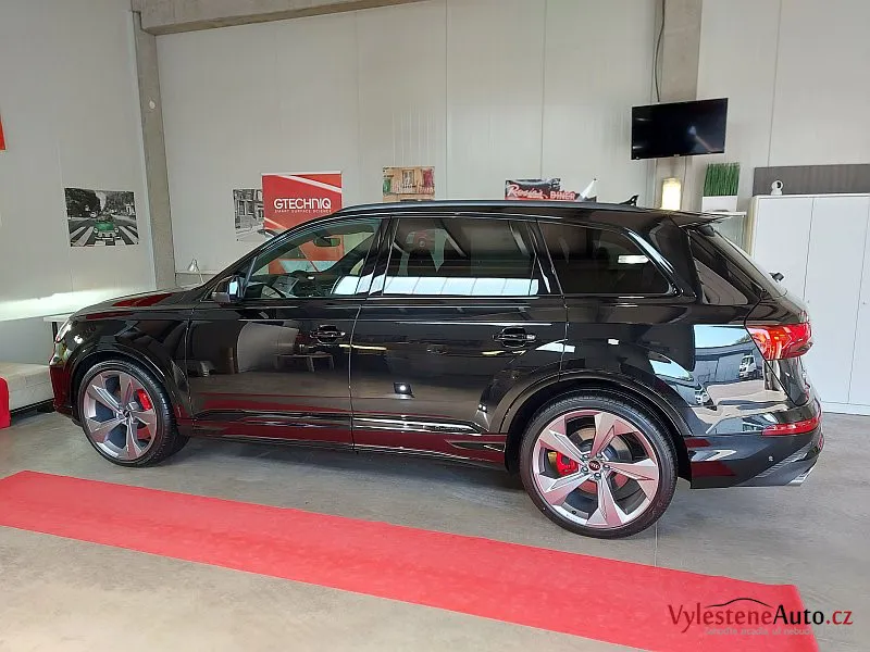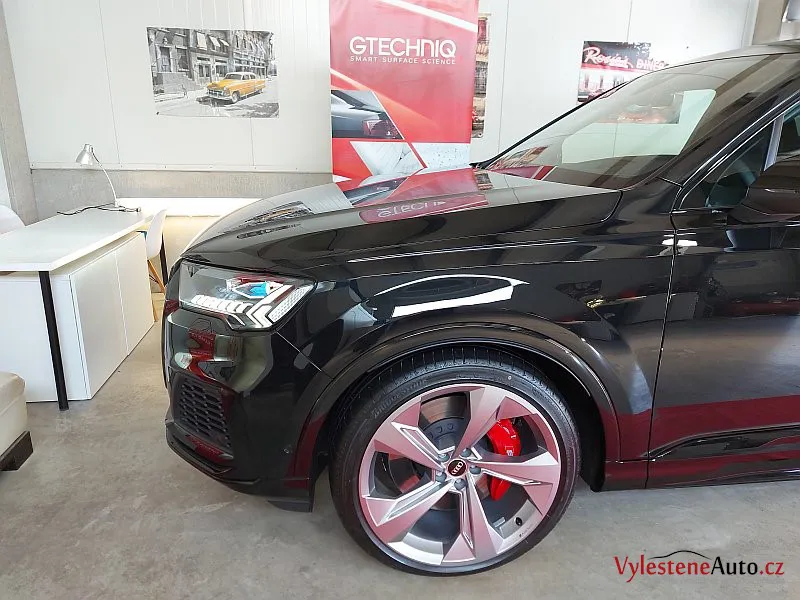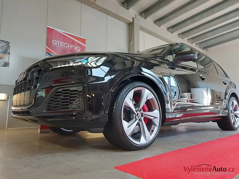 Po kontrole a odmaštění jsme SQ7 ošetřili špičkovou vícevrstvou keramikou Gtechniq se zárukou a výdrží až 5 let.
