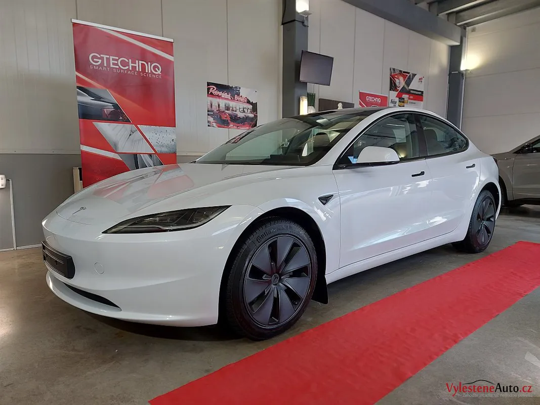 Sněhobílá a zbrusu nová Tesla Model 3 po dekontaminaci, vícekrokovém leštění laku a ochraně špičkovou vícevrstvou keramikou Gtechniq s výdrží až 5 let a zárukou. Keramiku Gtechniq najdete také na všech sklech, zrcátkách, v zádveří a na SPZ.