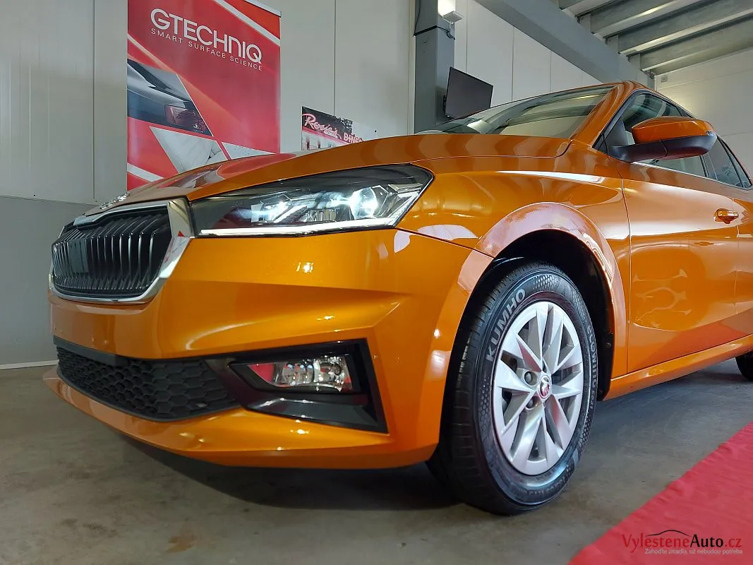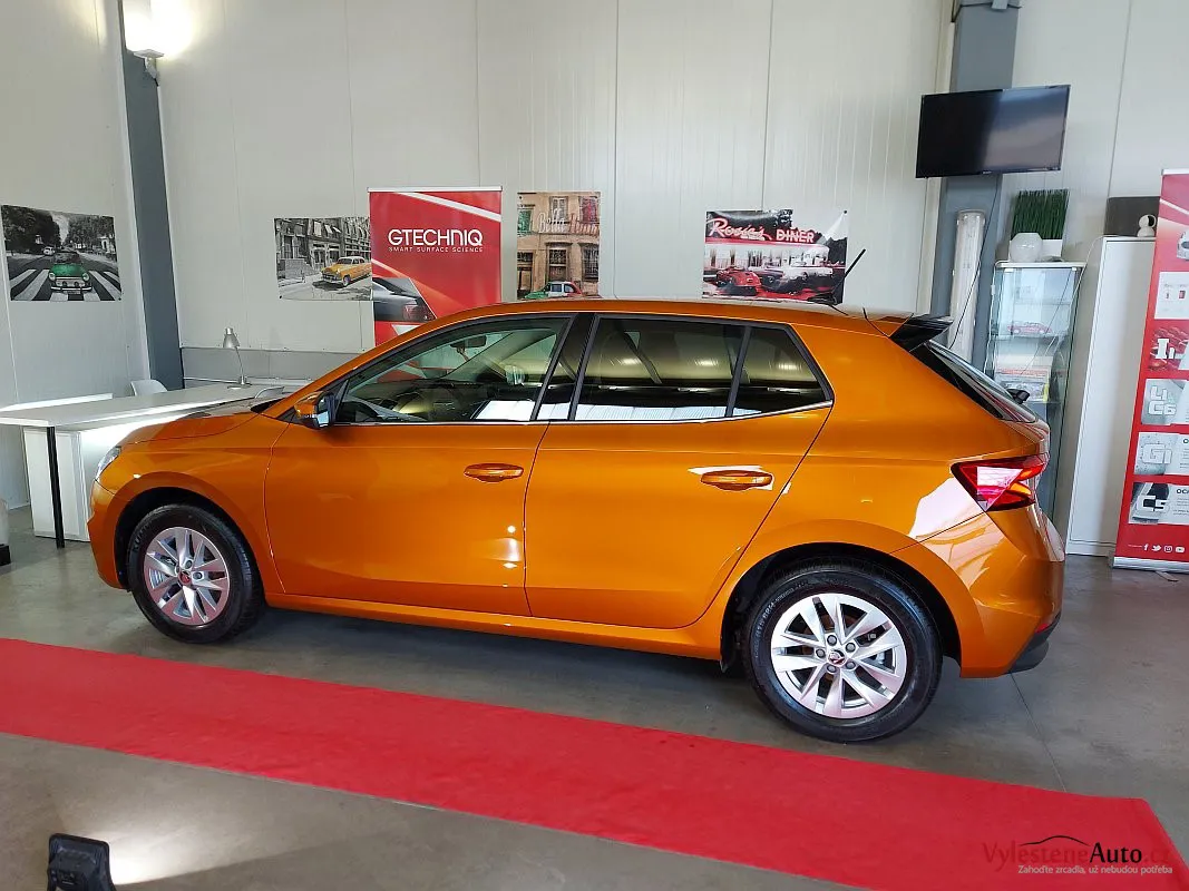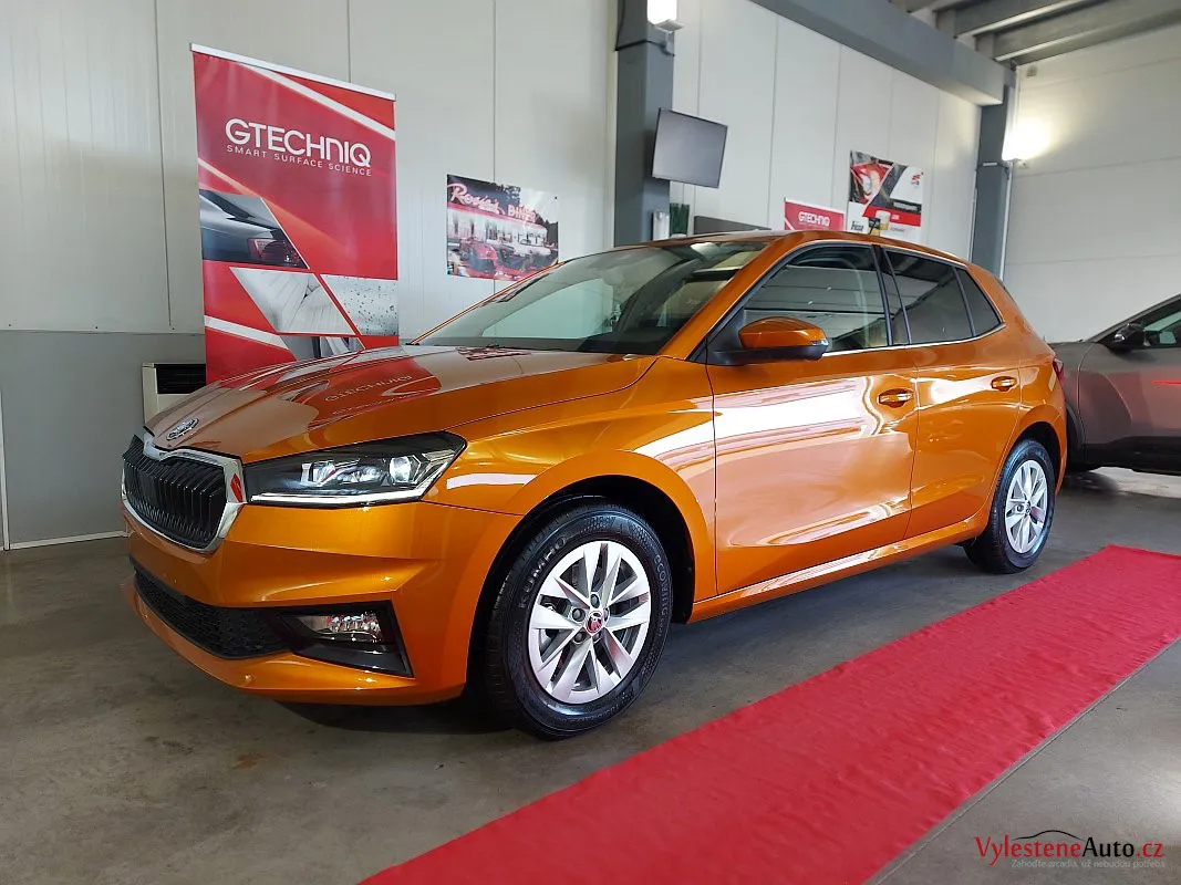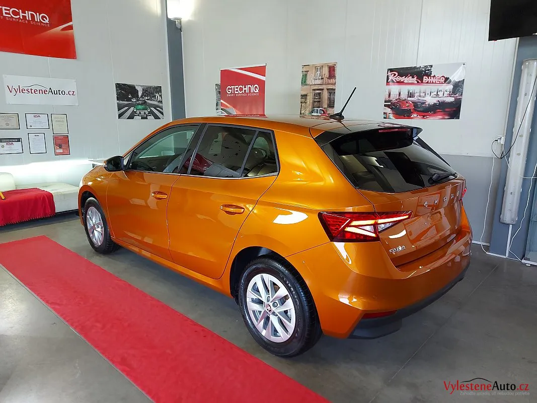 Další stroj, který se u nás zastavil pro detailing, je tato téměř nová Škoda Fabia s perfektní výbavou, automatickou převodovkou a hlavně oranžovou metalízou Fénix.