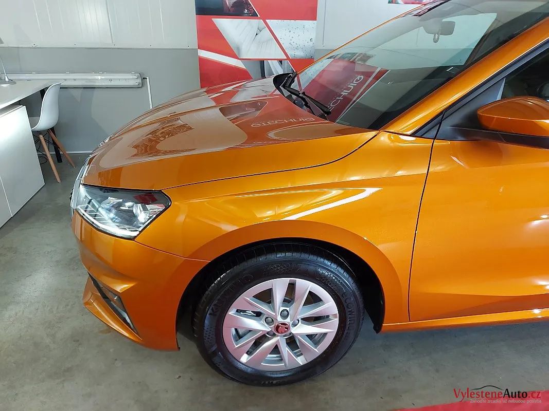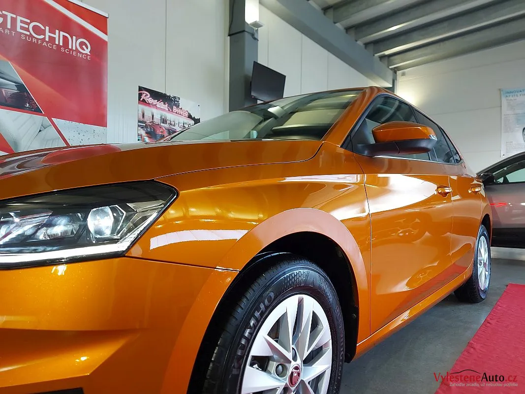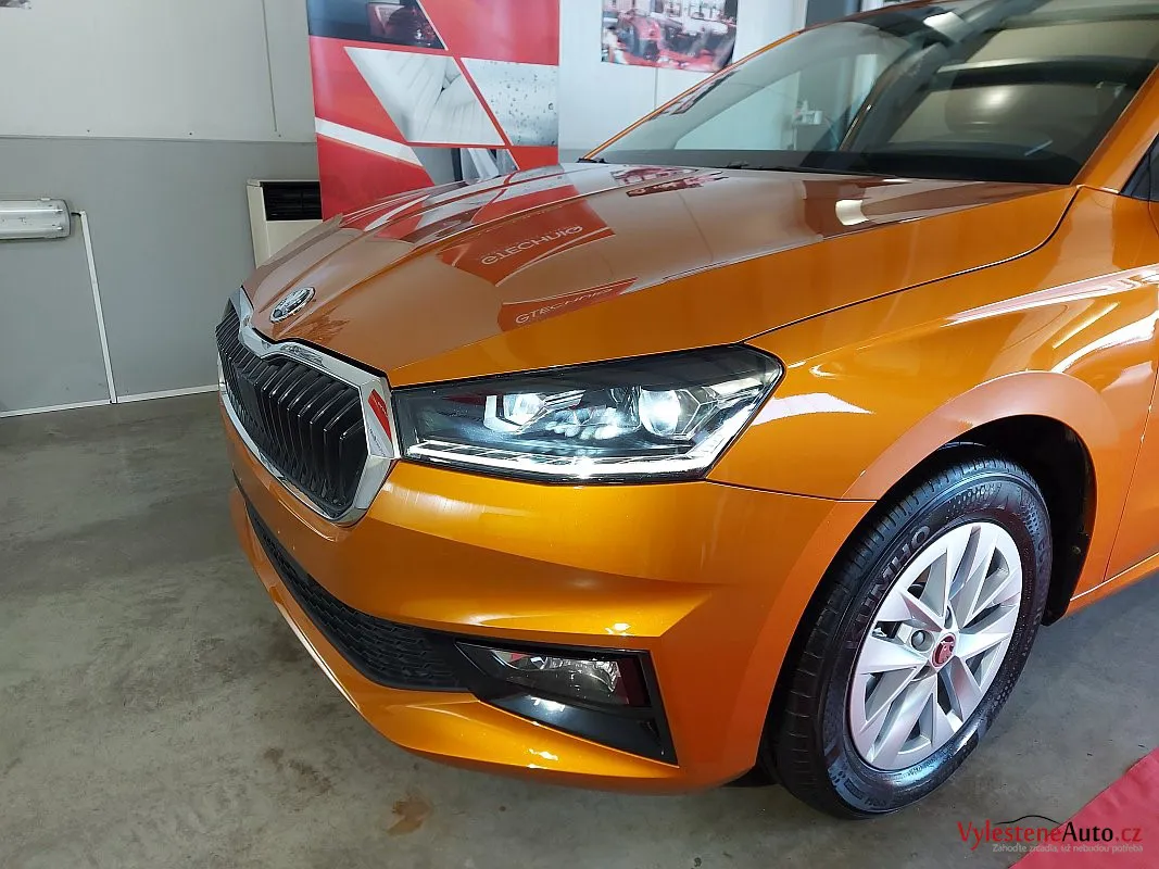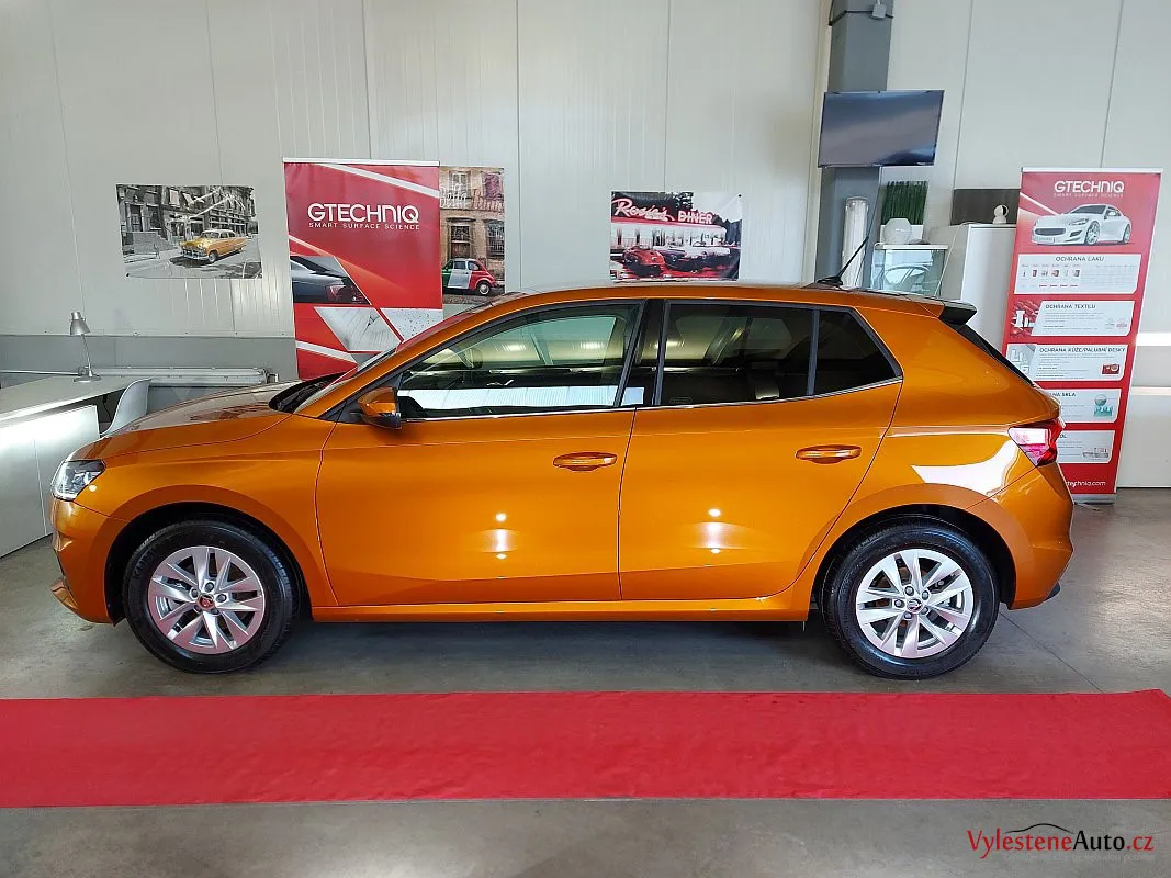 Další stroj, který se u nás zastavil pro detailing, je tato téměř nová Škoda Fabia s perfektní výbavou, automatickou převodovkou a hlavně oranžovou metalízou Fénix.