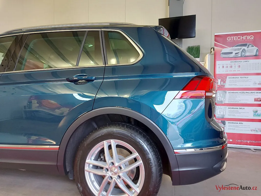 Další stroj, který se u nás zastavil pro detailing, je tento VW Tiguan, nalakovaný zajímavou zelenou metalízou.