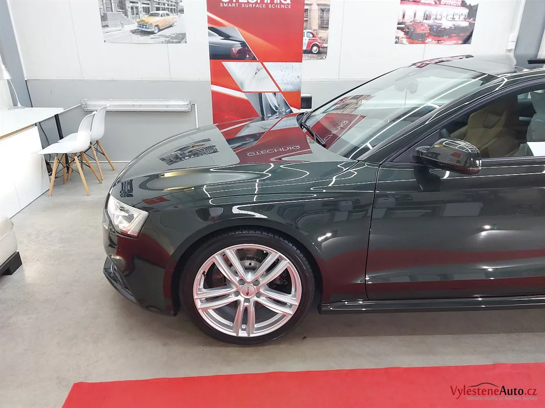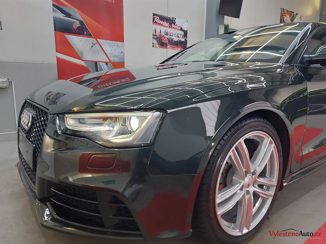 Tentokrát tu máme vzácnou návštěvu - nádherné Audi RS5 s ojedinělou barevnou kombinací - derby green metalíza a béžový interiér. Derby green přechází od černé až po zelenou perleť. Za nás každopádně palec nahoru!