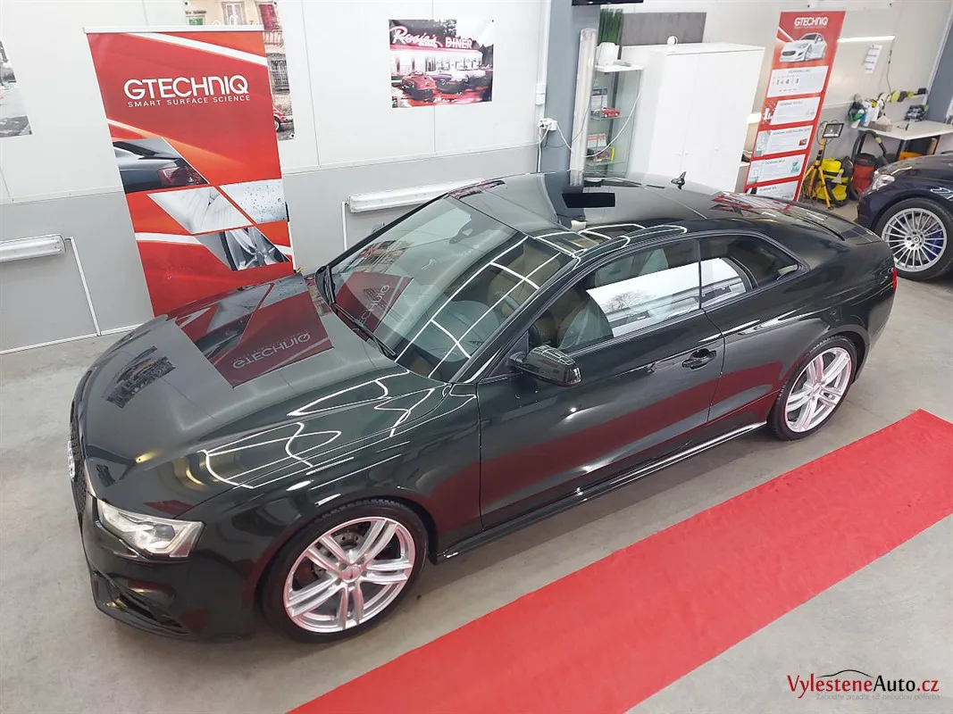 Naším úkolem bylo dostat RS5 do co nejlepšího stavu = vícekroková renovace laku, retuše barvou namíchanou dle VIN, kompletní péče o interiér a samozřejmě ochrana špičkovou keramikou Gtechniq.