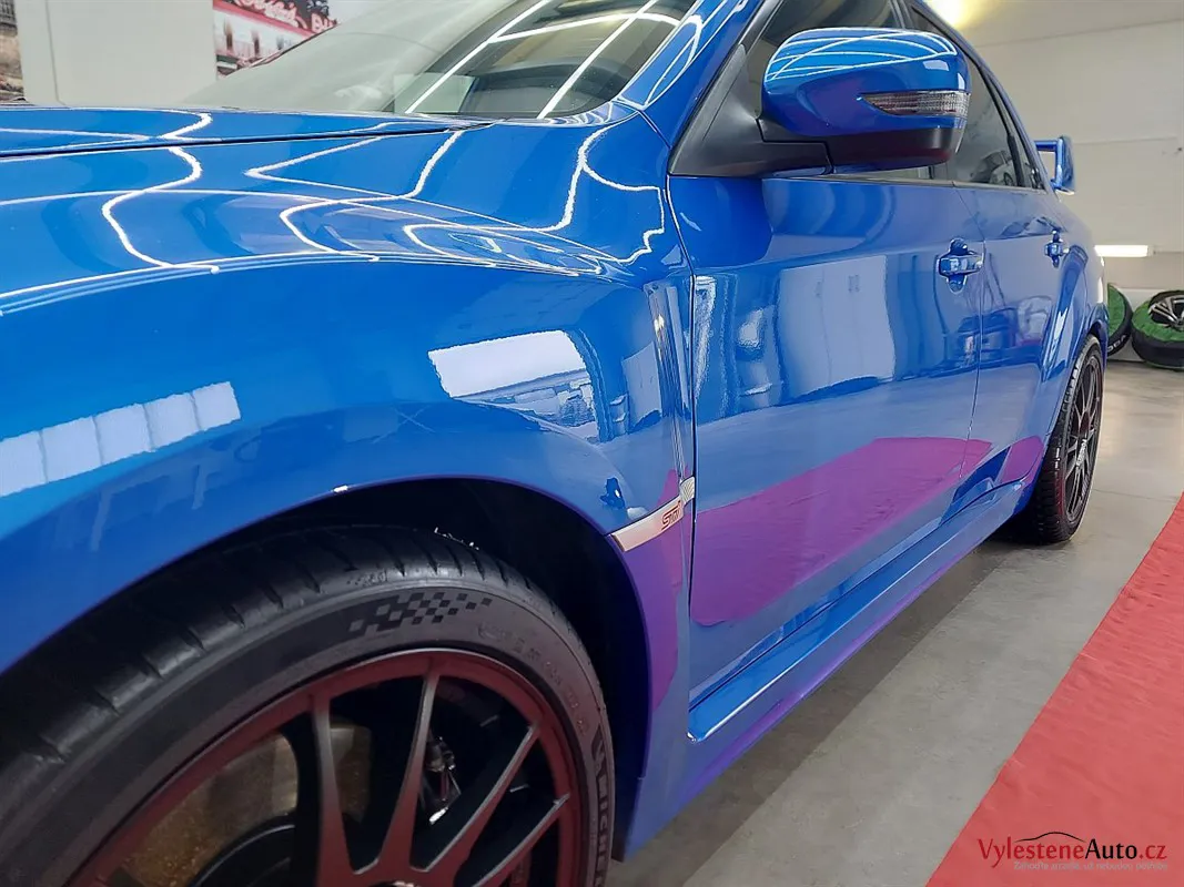 Pečlivá dekontaminace a leštění zbavila lak hrubosti a vrátila mu lesk a hloubku. Tohle STI si to rozhodně zaslouží. 😉