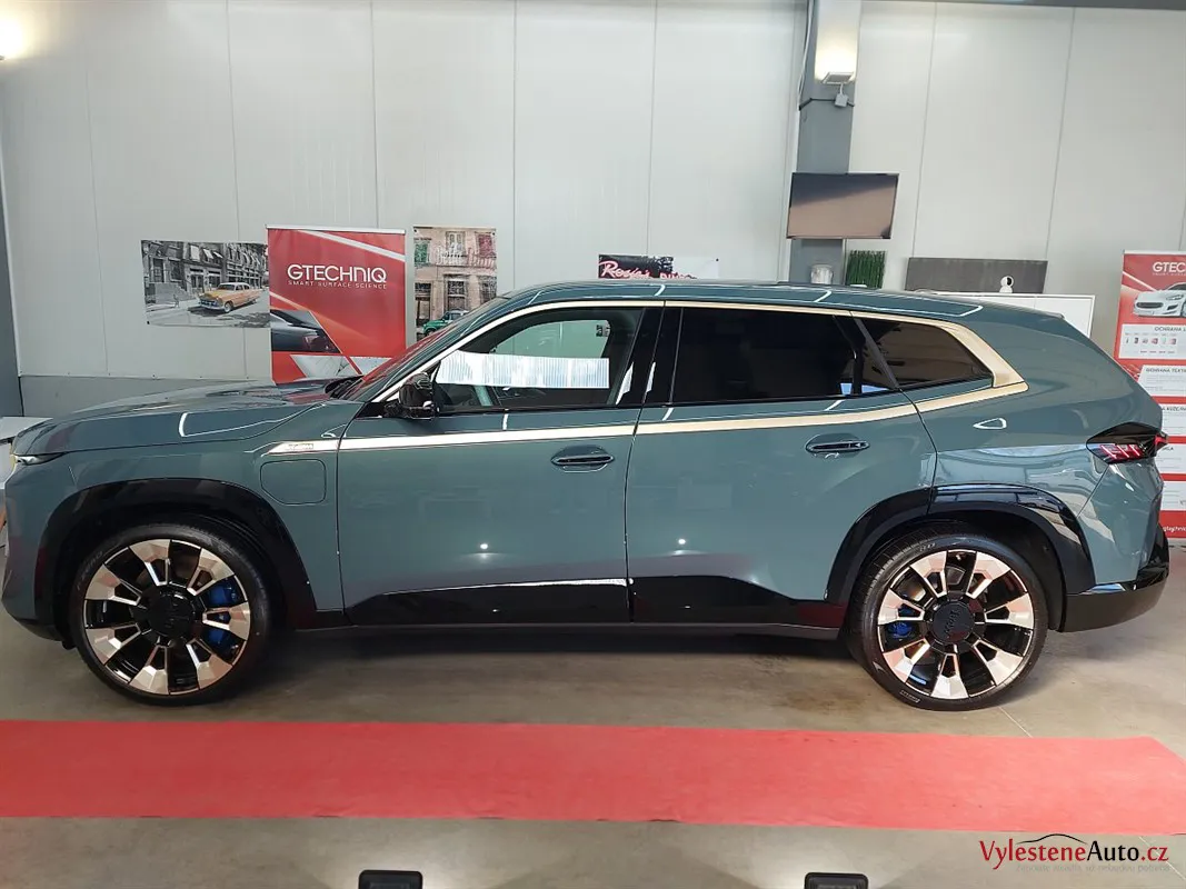 Fantastická je jemně zelená perleťová metalíza se zlatými doplňky, 23" koly a zelenomodrým interiérem.