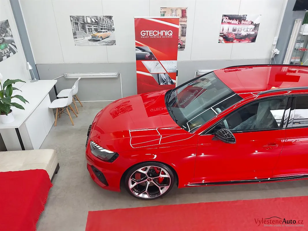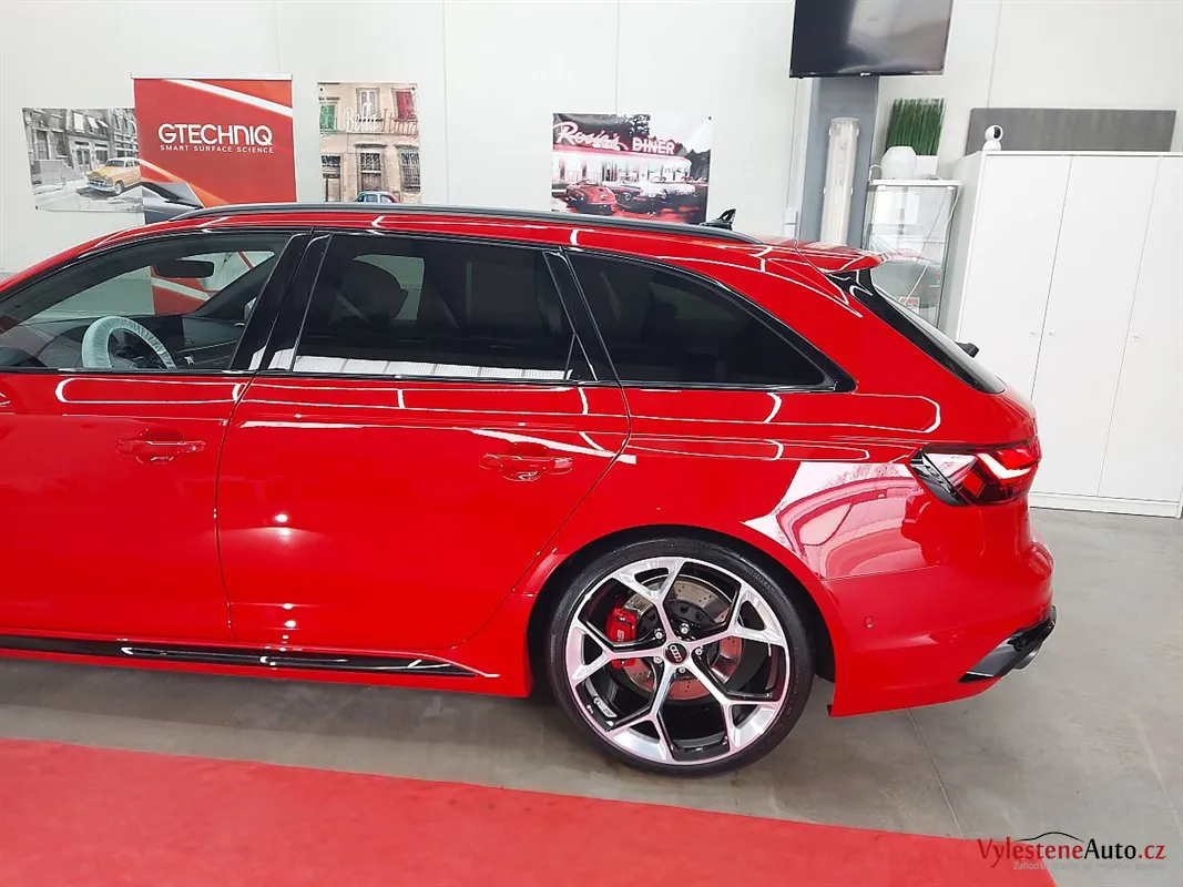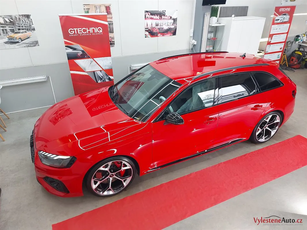Měli jsme tu čest věnovat se tomuto fantastickému Audi RS4 kombi, nalakované červenou perleťovou metalízou.