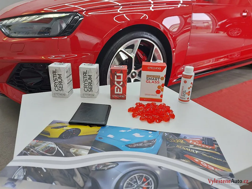 - Aplikace keramiky Gtechniq na skla, motor, litá kola, brzdiče a do zádveří