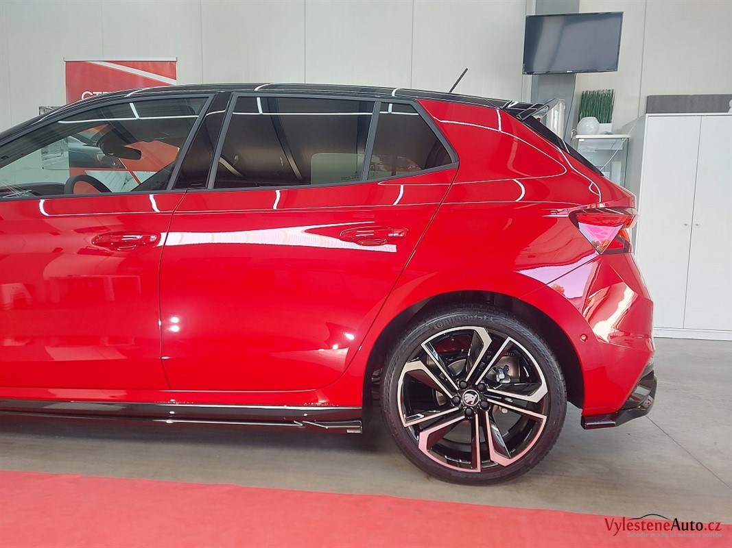 Máme tu další stroj - tentokrát zbrusu novou Škodu Fabii Monte Carlo. Fabii pohání schopný motor 1.5 TSI s výkonem 150 koní a automatickou převodovkou. Zajímavě hravý je i interiér. Vše korunuje krásná červená perleťová metalíza.