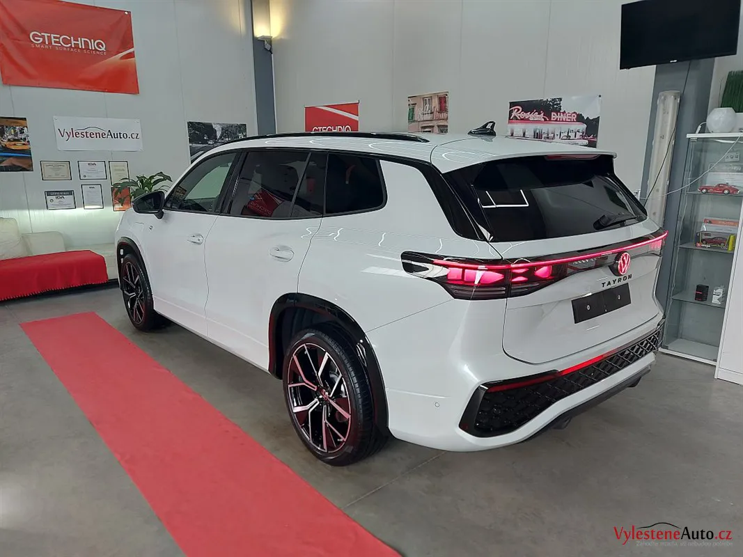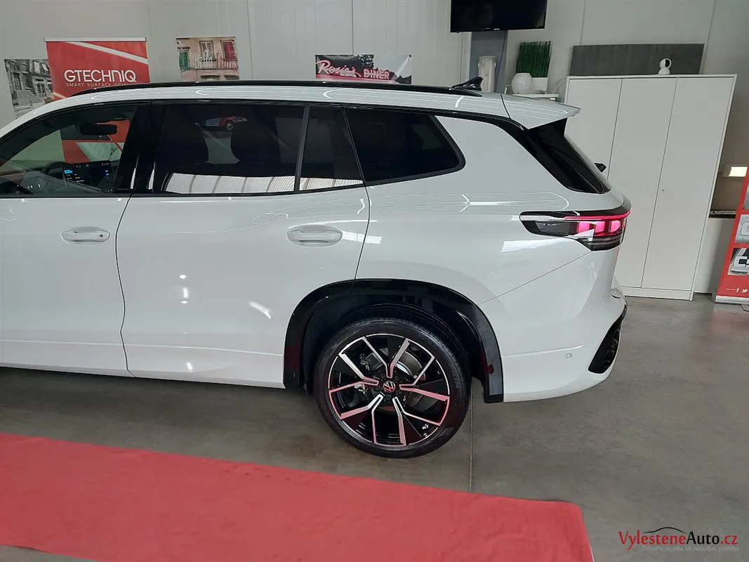 Dnes tu pro Vás máme tento zbrusu nový VW Tayron, nalakovaný bílou perleťovou metalízou a vyšperkovaný R paketem nebo interiérem v černé kůži. Hodně zajímavá novinka jsou svítící loga.