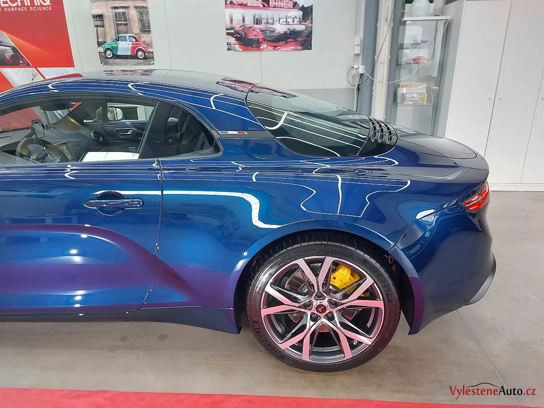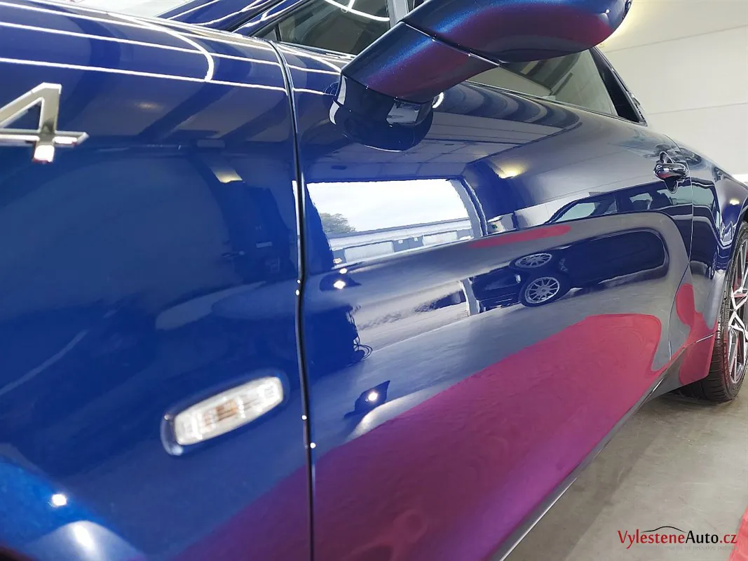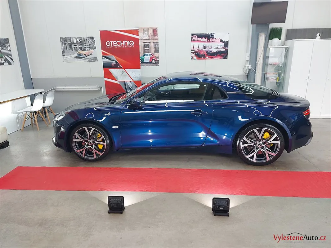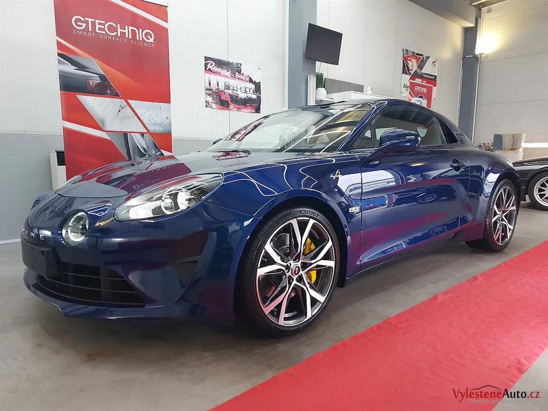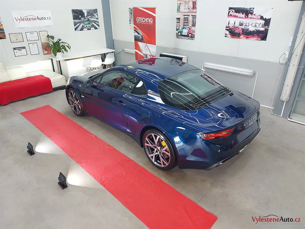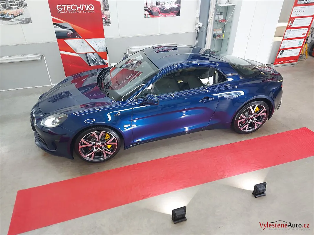 A110 byla zbrusu nová a v perfektním stavu. I tak proběhla pečlivá dekontaminace a vícekrokové přeleštění laku. Cílem bylo lak připravit na keramiku a vykouzlit větší hloubku a lesk.