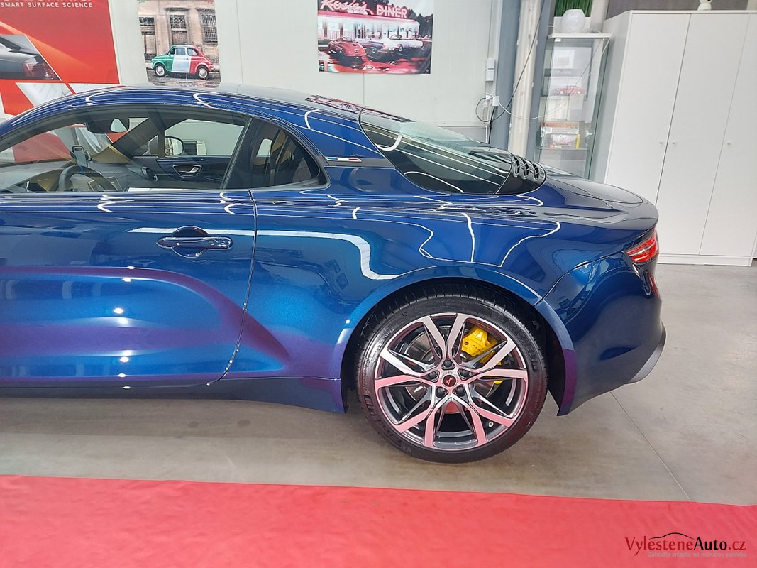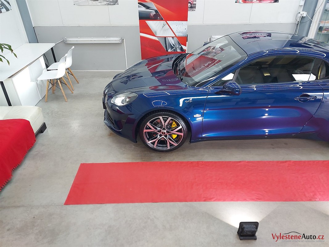 A110 byla zbrusu nová a v perfektním stavu. I tak proběhla pečlivá dekontaminace a vícekrokové přeleštění laku. Cílem bylo lak připravit na keramiku a vykouzlit větší hloubku a lesk.