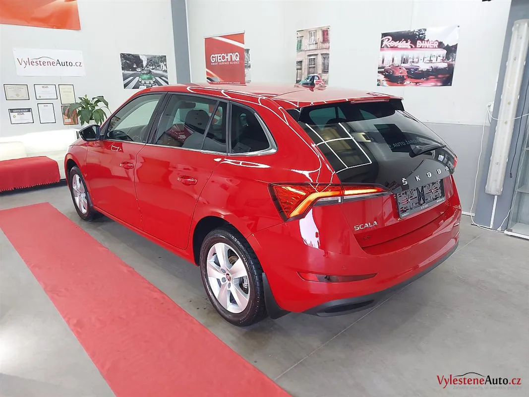 Škodu Scala, nalakovaná červenou barvou. Pod kapotou je motor 1.5 tsi.