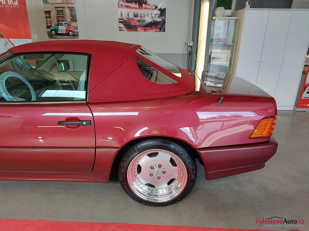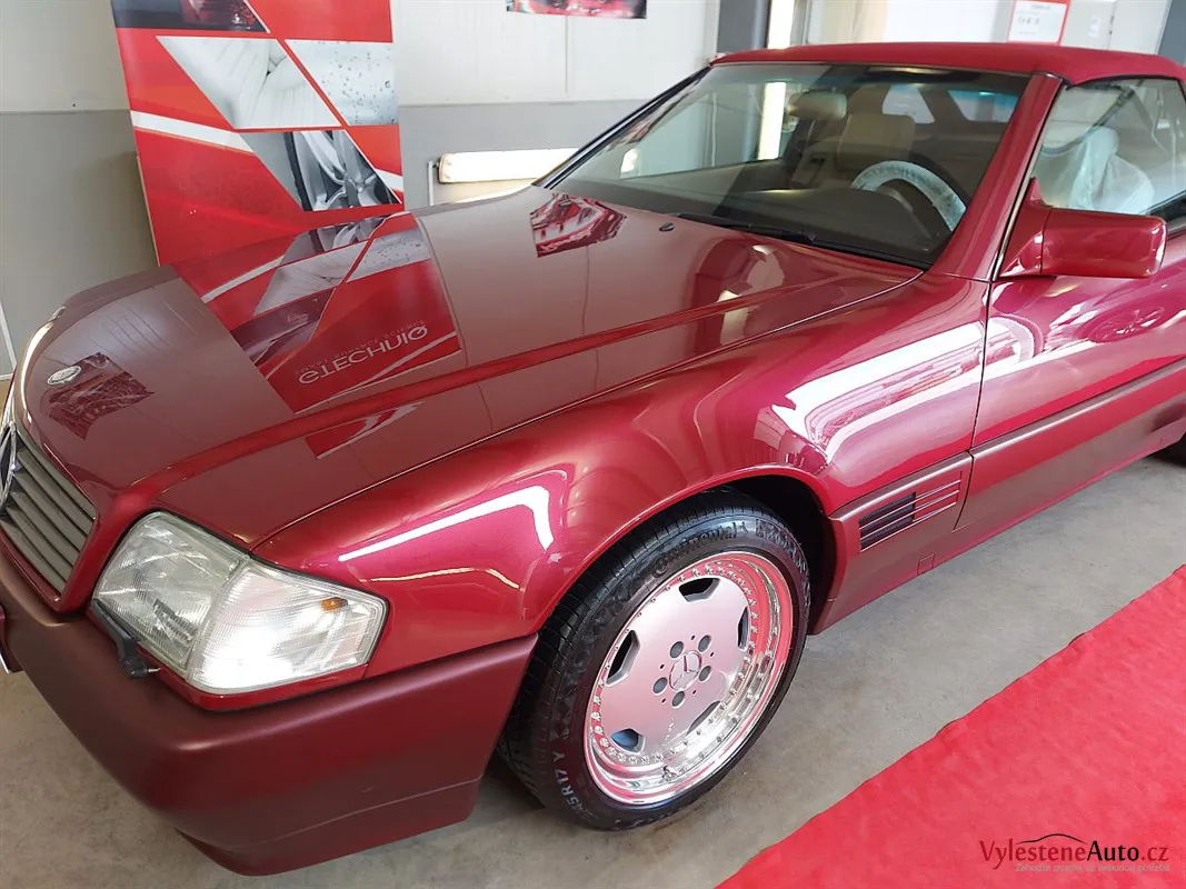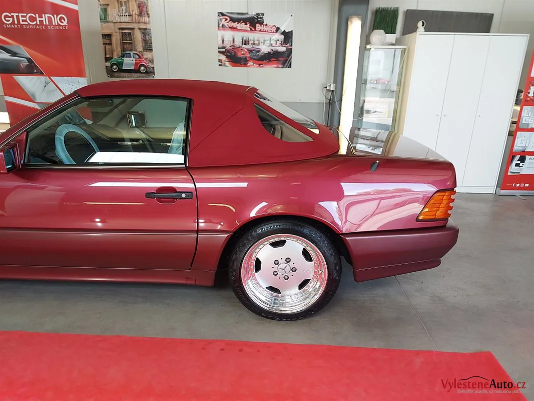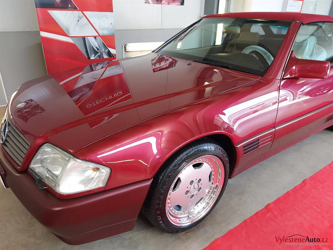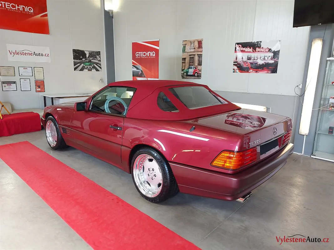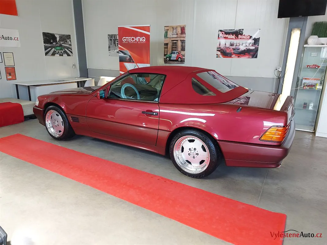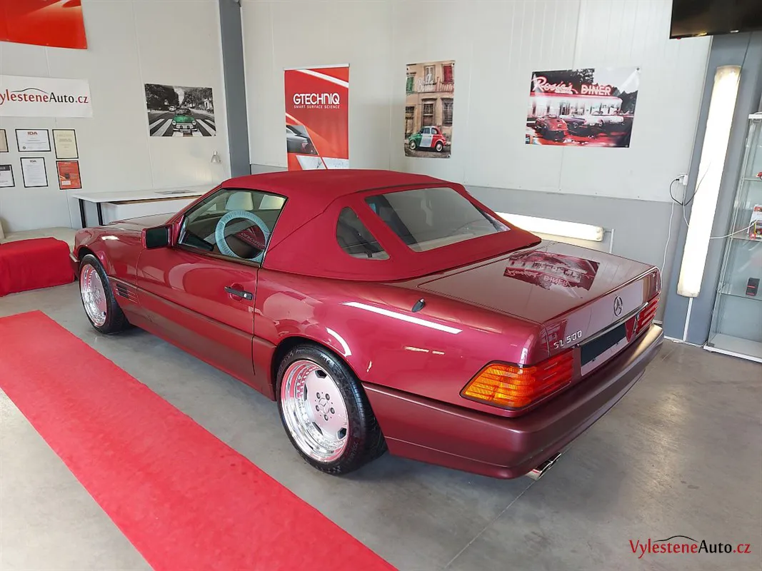 Jako další stroj jsme u nás přivítali tento Mercedes SL 500, nalakovaný úžasnou vínovou metalízou. Ve své době představovala "žehlička" vrchol technologie a luxusu. Je neuvěřitelné, že i dnes, po 30 letech byste s ní mohli denně jezdit a byli byste maximálně cool.