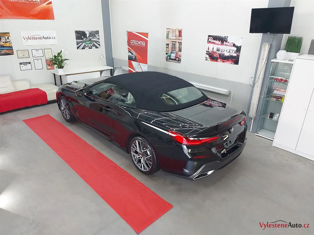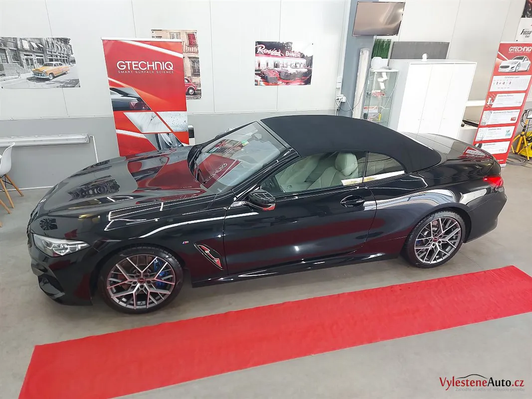 Jako ochranu jsme zvolili špičkovou kompozitní keramiku Gtechniq Crystal Serum Light s výdrží až 5 let a zárukou. Kromě karoserie jsme keramikou Gtechniq ošetřili také všechna skla, zrcátka a plátěnou střechu.