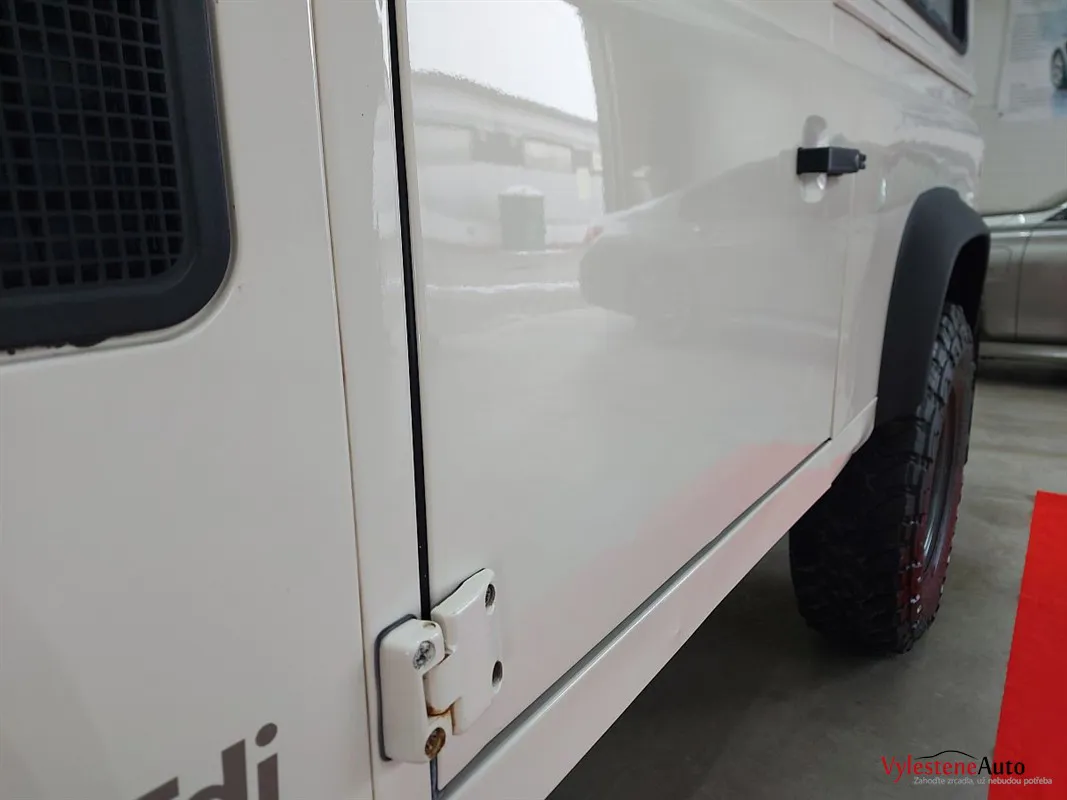 Defender už byl v minulosti lakovaný a leštěný. Bohužel leštění nejspíše probíhalo rotační leštičkou - na několika místech byl už tak tenký (80 mikronů) lak propálený a oslabený. Pálení rotační leštičkou však neodstranilo spoustu škrábanců a matných míst.