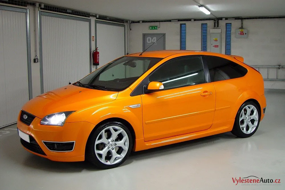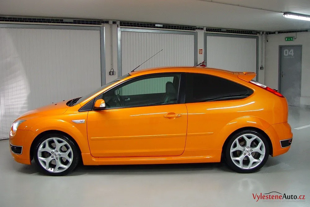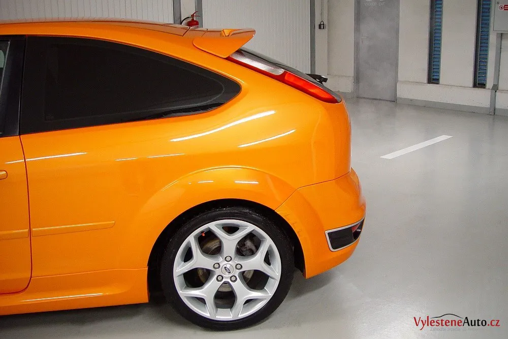 Ford Focus II ST s třídveřovou karosérií, originálními litými koly a benzínovým motorem 2.5 turbo. Pětiválec nabízí 225 pěkně divokých koní a fenomenální zvuk. Co víc si přát? Tedy kromě úžasné oranžové metalízy "electric orange"...