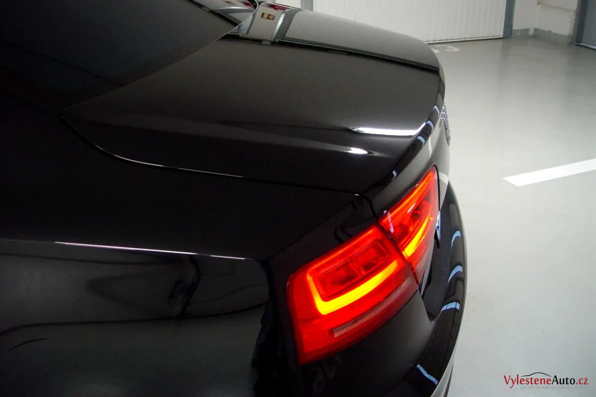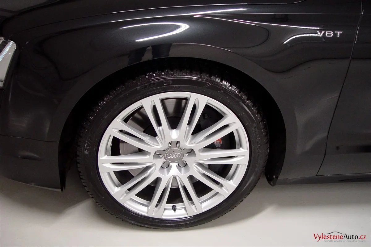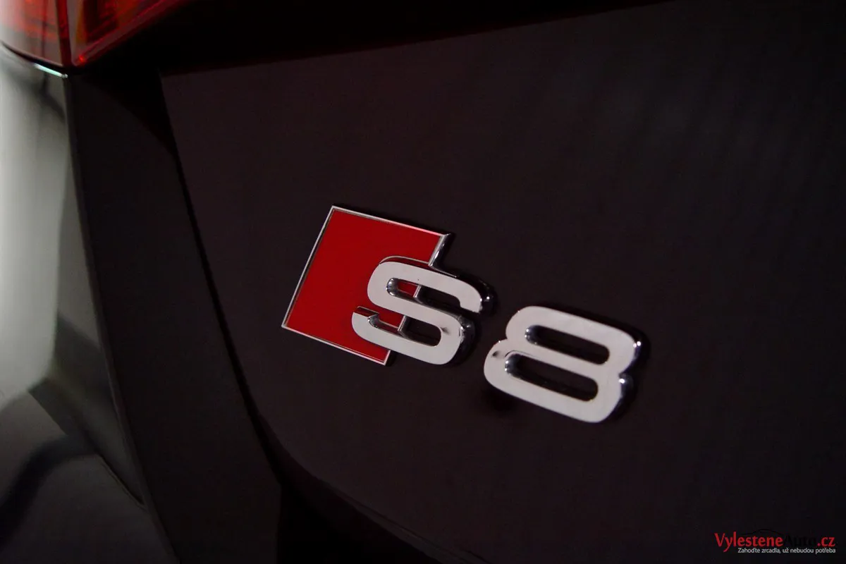 Černý dravec Audi S8, poháněný motorem 4.0 V8 twin turbo o výkonu 520 koní. Maximum luxusu a výkonu v jednom balení, letící prudce vpřed na originálních litých kolech Audi, za doprovodu burácení motoru V8, které vychází pro jistotu hned ze čtyř koncovek výfuků...