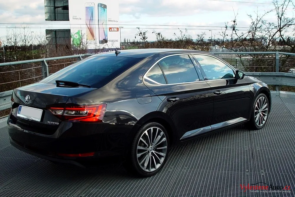 Zbrusu nová Škoda Superb nalakovaná černou perleťovou metalízou a hýčkající své cestující nejvyšší možnou výbavou Laurin&Klement. Dokonale sestavený vůz má pod kapotou turbodiesel o výkonu 190 koní, automatickou převodovku DSG a pohon všech kol.