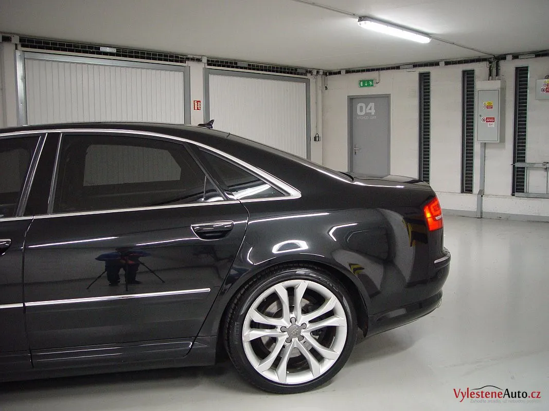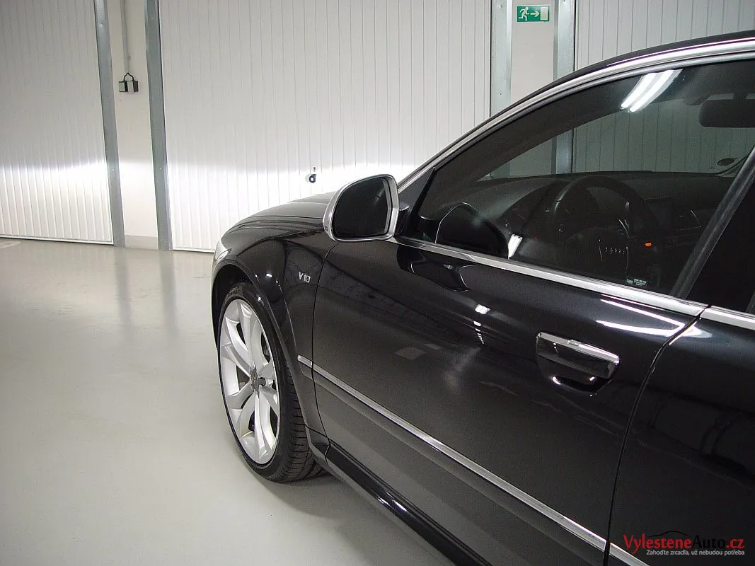 Pro slideshow klikněte na obrázek Toto je vskutku fenomenální stroj - Audi S8, motor V10 z Lamborghini, 450 koní, 4 výfuky, černá metalíza, 20´ originální kola. Důstojný vůz i pro Kurýra... :-) Prohlédnout ceník Zeptejte se nás Top projekty