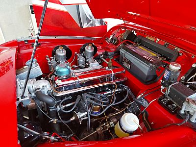 Neobvyklá auta nás vždy bavila a o to větší radost jsme měli, když k nám s chraplavým zvukem dorazil tento tradiční britský sporťák - Triumph TR3, nalakovaný zářivou rudou barvou. Moc se nám líbil jeho chraplavý zvuk, blyštivý motor a neskutečně přesné řazení - každá rychlost zapadne přesně na své místo s hlasitým kovovým cvaknutím. Ale pojďme se podívat na lak.